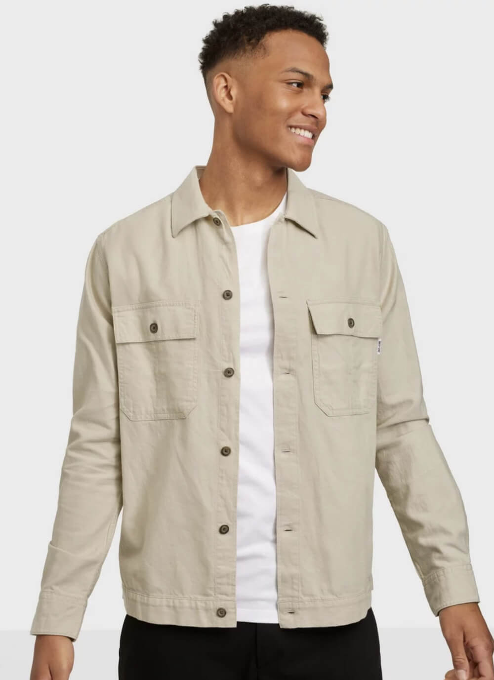 The button-up front and classic collar create a structured look, while the long sleeves and straight hem offer ease of movement. Featuring two front chest pockets with button fastening, this jacket works well as an outer layer or lightweight overshirt across casual and smart-casual settings.